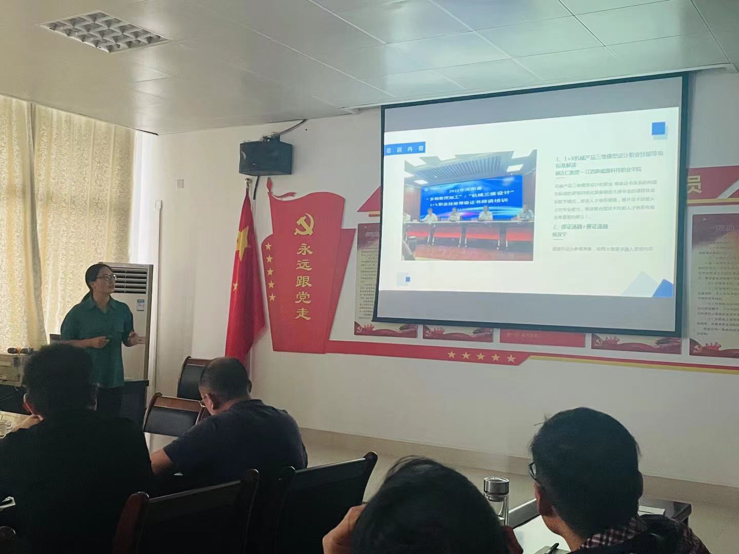 李明老师分享了在河南交通职业技术学院参加“双师型”省培的学习内容,包括专家授课、实操练习以及企业参观等具体内容,总结了自己的收获及思考,表示作为教师要不断提高知识和技能,自觉做研究型、反思型老师。